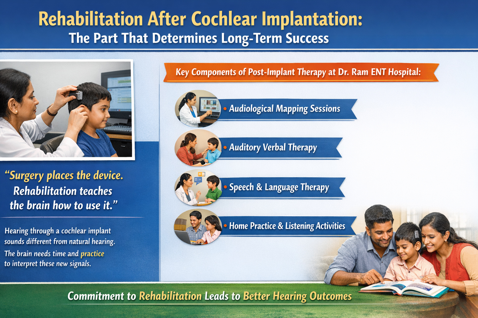 At Dr. Ram ENT Hospital, we work with families to identify hearing loss as early as possible and guide them through the candidacy process without unnecessary delay. Early identification, early assessment, and early treatment this is the pathway that gives children born with severe hearing loss the best possible start.